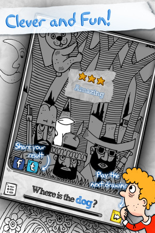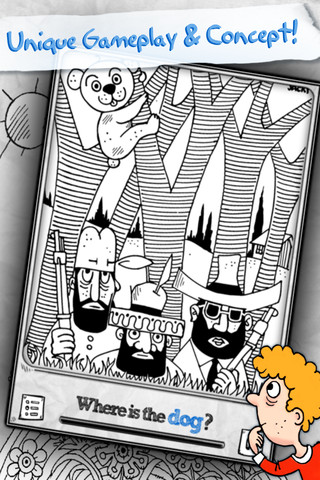创意找茬游戏,本作将带入不同的游戏元素以及观察方式,提升游戏难度以及耐玩性,赶快一起来看看吧!有点类似找威利的玩法,不过游戏用以最基本的黑白漫画风格呈现,玩家将要在图片中找出所指定的物件,最特别的是玩家不能只用正常的方式看图片,有可能需要尝试将装置旋转90度或180度才能观察出所要找的目标。而目标通常用特殊的绘画手法隐藏在漫画中,必须要花点时间来搜索。