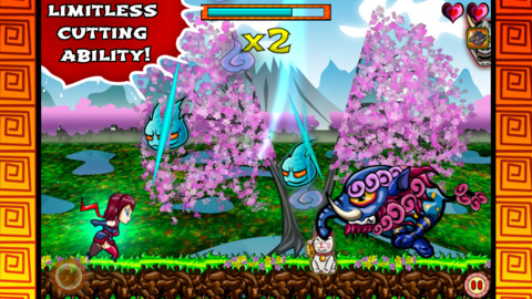 《忍者切切 Ninja Slash!》是一款横版动作类游戏,结合了切水果和跑酷的元素。游戏打出"厌倦水果忍者后的选择"这一招牌,如果说指划类游戏当中最出色的要数《水果忍者 Fruit Ninja》之类,那么这款游戏在设计上却完成了一个操作习惯上的逆袭,这一次,指划动作可能要比"水果"要繁复得多,玩家能否适应新的游戏玩法呢?
