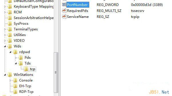 2.找到 HKEY_LOCAL_MACHINE\System\CurrentControlSet\Control\Terminal Server\Wds\Repwd\Tds\Tcp