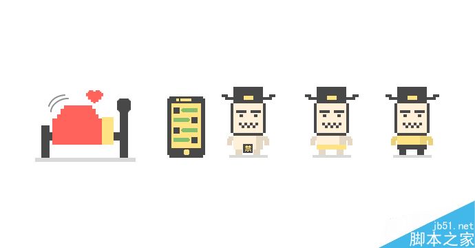 这是一个H5游戏中的形象,根据需要分别绘制了失败、生气、愉悦三种表情姿势。